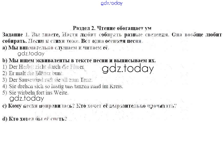 На страницах сайта gdz.today вы найдете учебный и вспомогательный материал, направленный на улучшения знаний школьной программы. ГДЗ - онлайн мир знаний Раздел 2 Решение к главе 2 (Разделы) 1 Учебнику по Немецкому языку для 6 класса Бим, Садомова Просвещение 2014