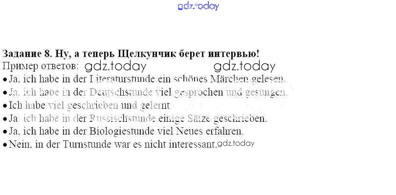 На страницах сайта gdz.today вы найдете учебный и вспомогательный материал, направленный на улучшения знаний школьной программы. ГДЗ - онлайн мир знаний Раздел 6 Решение к главе 2 (Разделы) 8 Учебнику по Немецкому языку для 6 класса Бим, Садомова Просвещение 2014
