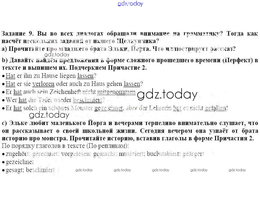 На страницах сайта gdz.today вы найдете учебный и вспомогательный материал, направленный на улучшения знаний школьной программы. ГДЗ - онлайн мир знаний Раздел 6 Решение к главе 3 (Разделы) 9 Учебнику по Немецкому языку для 6 класса Бим, Садомова Просвещение 2014