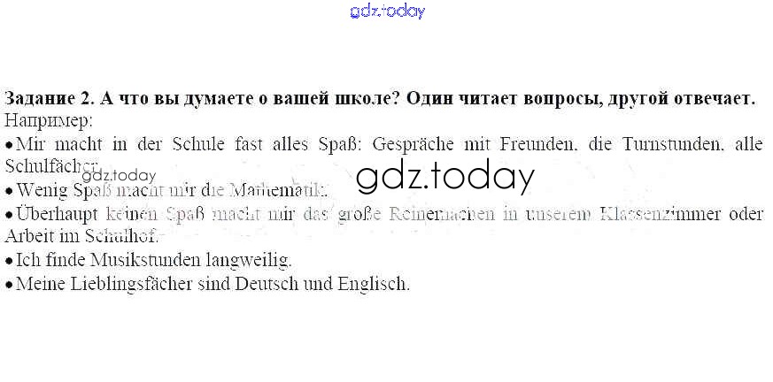 На страницах сайта gdz.today вы найдете учебный и вспомогательный материал, направленный на улучшения знаний школьной программы. ГДЗ - онлайн мир знаний Раздел 5 Решение к главе 4(Разделы) 2 Учебнику по Немецкому языку для 6 класса Бим, Садомова Просвещение 2014
