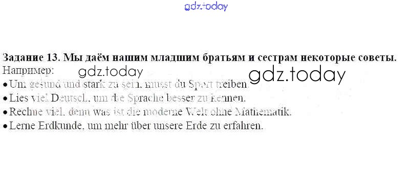 На страницах сайта gdz.today вы найдете учебный и вспомогательный материал, направленный на улучшения знаний школьной программы. ГДЗ - онлайн мир знаний Раздел 6 Решение к главе 4(Разделы) 13 Учебнику по Немецкому языку для 6 класса Бим, Садомова Просвещение 2014