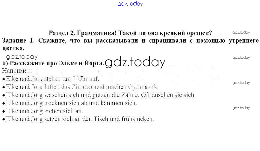 На страницах сайта gdz.today вы найдете учебный и вспомогательный материал, направленный на улучшения знаний школьной программы. ГДЗ - онлайн мир знаний Раздел 2 Решение к главе 5 (Разделы) 1 Учебнику по Немецкому языку для 6 класса Бим, Садомова Просвещение 2014