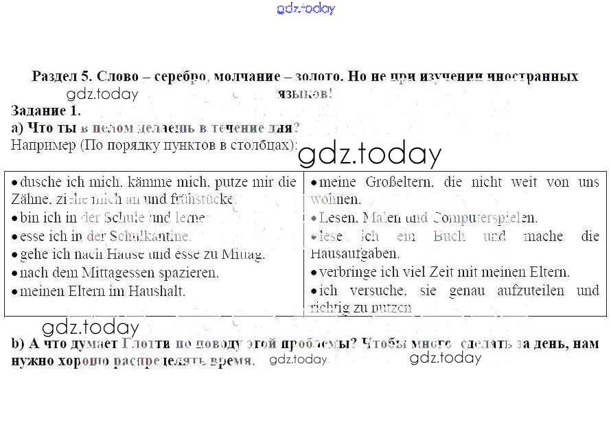 На страницах сайта gdz.today вы найдете учебный и вспомогательный материал, направленный на улучшения знаний школьной программы. ГДЗ - онлайн мир знаний Раздел 5 Решение к главе 5 (Разделы) 1 Учебнику по Немецкому языку для 6 класса Бим, Садомова Просвещение 2014