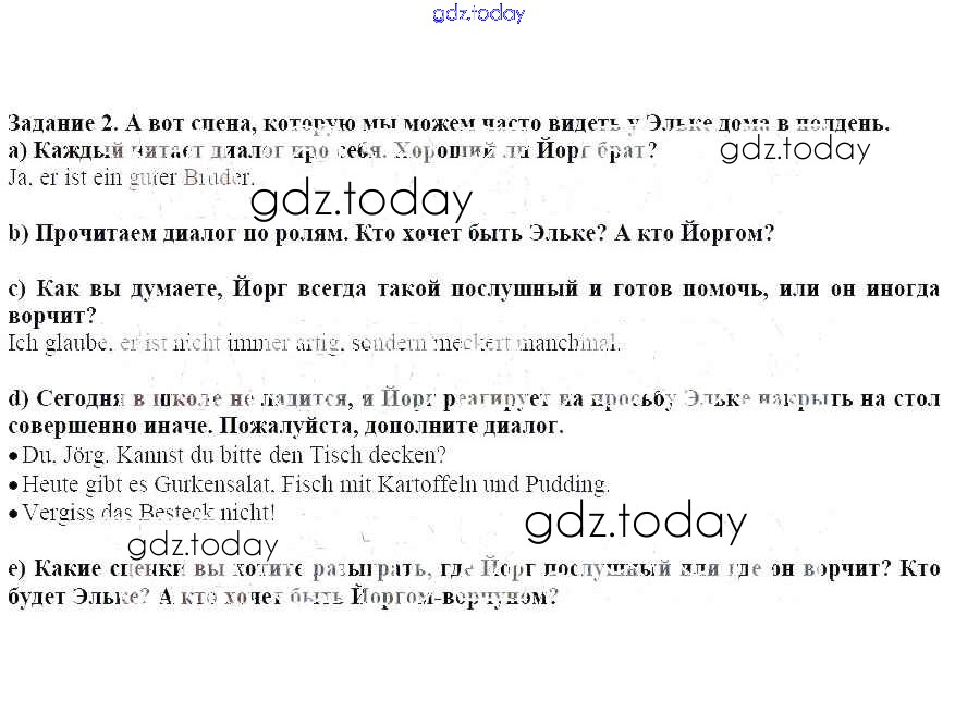 На страницах сайта gdz.today вы найдете учебный и вспомогательный материал, направленный на улучшения знаний школьной программы. ГДЗ - онлайн мир знаний Раздел 5 Решение к главе 5 (Разделы) 2 Учебнику по Немецкому языку для 6 класса Бим, Садомова Просвещение 2014