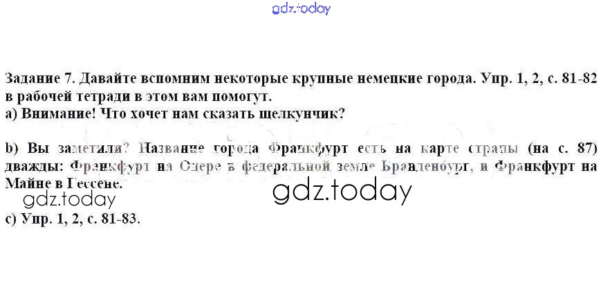 На страницах сайта gdz.today вы найдете учебный и вспомогательный материал, направленный на улучшения знаний школьной программы. ГДЗ - онлайн мир знаний Раздел 1 Решение к главе 6 (Разделы) 7 Учебнику по Немецкому языку для 6 класса Бим, Садомова Просвещение 2014