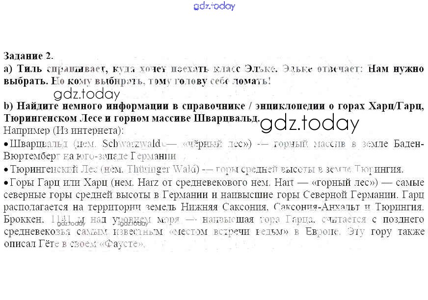 На страницах сайта gdz.today вы найдете учебный и вспомогательный материал, направленный на улучшения знаний школьной программы. ГДЗ - онлайн мир знаний Раздел 2 Решение к главе 6 (Разделы) 2 Учебнику по Немецкому языку для 6 класса Бим, Садомова Просвещение 2014