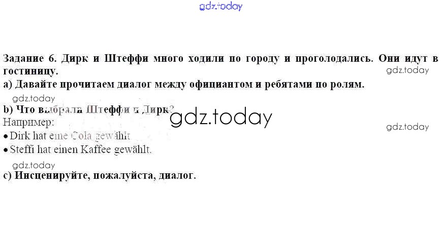 На страницах сайта gdz.today вы найдете учебный и вспомогательный материал, направленный на улучшения знаний школьной программы. ГДЗ - онлайн мир знаний Раздел 4 Решение к главе 6 (Разделы) 6 Учебнику по Немецкому языку для 6 класса Бим, Садомова Просвещение 2014