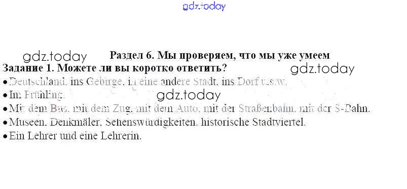 На страницах сайта gdz.today вы найдете учебный и вспомогательный материал, направленный на улучшения знаний школьной программы. ГДЗ - онлайн мир знаний Раздел 6 Решение к главе 6 (Разделы) 1 Учебнику по Немецкому языку для 6 класса Бим, Садомова Просвещение 2014