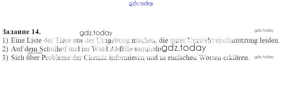 На страницах сайта gdz.today вы найдете учебный и вспомогательный материал, направленный на улучшения знаний школьной программы. ГДЗ - онлайн мир знаний Решение к уроку 5 14 Учебнику по Немецкому языку для 6 класса Радченко, Хебелер Дрофа Alles Klar! 2014