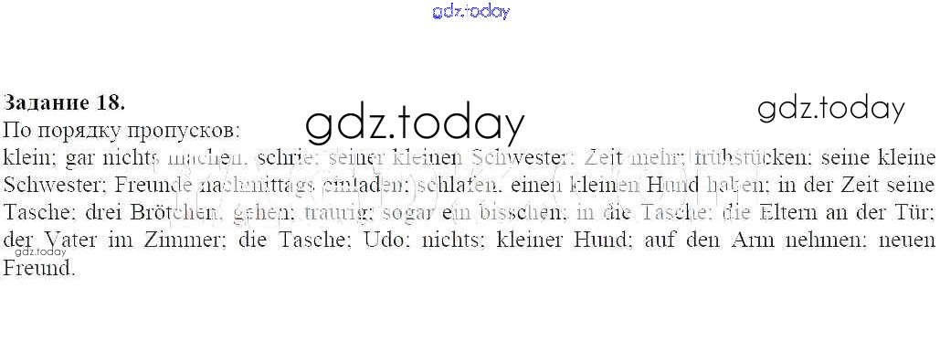 На страницах сайта gdz.today вы найдете учебный и вспомогательный материал, направленный на улучшения знаний школьной программы. ГДЗ - онлайн мир знаний Решение к уроку 5 18 Учебнику по Немецкому языку для 6 класса Радченко, Хебелер Дрофа Alles Klar! 2014