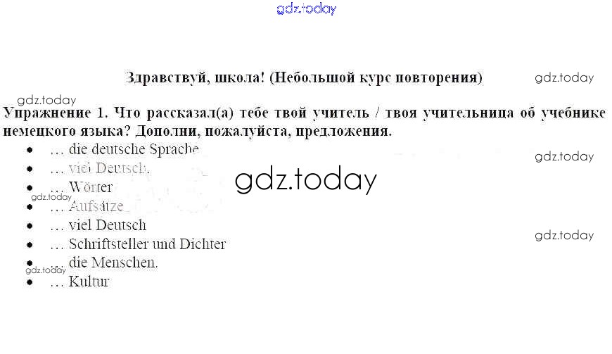 На страницах сайта gdz.today вы найдете учебный и вспомогательный материал, направленный на улучшения знаний школьной программы. ГДЗ - онлайн мир знаний Здравствуй, школа 1 Рабочей тетради по Немецкому языку для 6 класса Бим, Фомичева Просвещение 2008