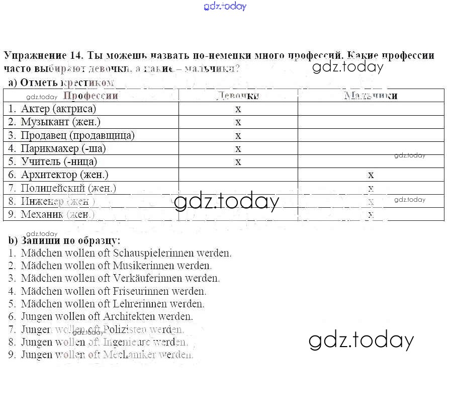 Ответы к Здравствуй, школа 14 Рабочей тетради по Немецкому языку для 6 класса Бим, Фомичева Просвещение 2008