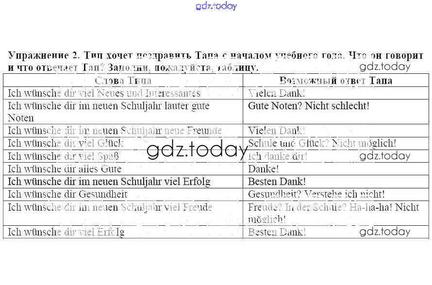 На страницах сайта gdz.today вы найдете учебный и вспомогательный материал, направленный на улучшения знаний школьной программы. ГДЗ - онлайн мир знаний Выучишь что-то, тогда будешь что-то знать Решение к главе 1. Начало занятий в школе 2 Рабочей тетради по Немецкому языку для 6 класса Бим, Фомичева Просвещение 2008