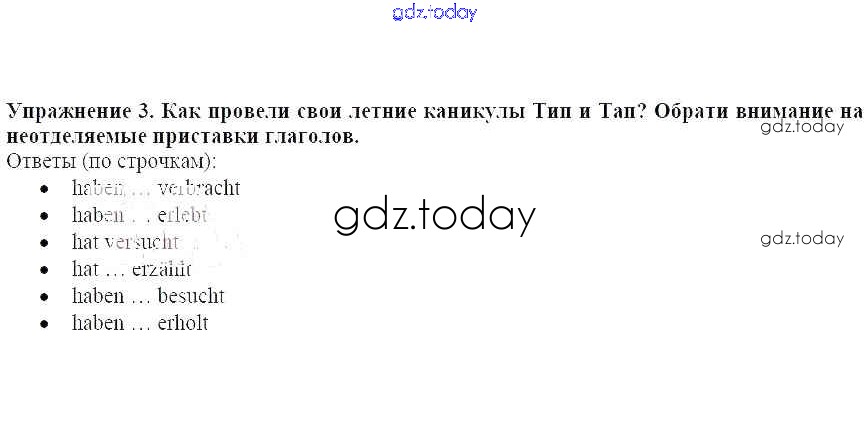 На страницах сайта gdz.today вы найдете учебный и вспомогательный материал, направленный на улучшения знаний школьной программы. ГДЗ - онлайн мир знаний Грамматика Решение к главе 1. Начало занятий в школе 3 Рабочей тетради по Немецкому языку для 6 класса Бим, Фомичева Просвещение 2008
