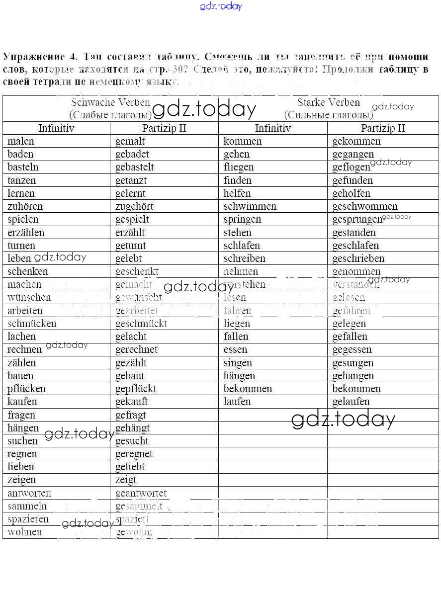 На страницах сайта gdz.today вы найдете учебный и вспомогательный материал, направленный на улучшения знаний школьной программы. ГДЗ - онлайн мир знаний Грамматика Решение к главе 2. За окном листопад 4 Рабочей тетради по Немецкому языку для 6 класса Бим, Фомичева Просвещение 2008