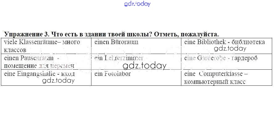 На страницах сайта gdz.today вы найдете учебный и вспомогательный материал, направленный на улучшения знаний школьной программы. ГДЗ - онлайн мир знаний Выучишь что-то, тогда будешь что-то знать Решение к главе 3. Немецкие школы 3 Рабочей тетради по Немецкому языку для 6 класса Бим, Фомичева Просвещение 2008