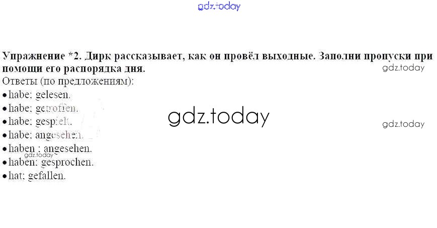 На страницах сайта gdz.today вы найдете учебный и вспомогательный материал, направленный на улучшения знаний школьной программы. ГДЗ - онлайн мир знаний Выучишь что-то, тогда будешь что-то знать Решение к главе 5. Один день нашей жизни 2 Рабочей тетради по Немецкому языку для 6 класса Бим, Фомичева Просвещение 2008