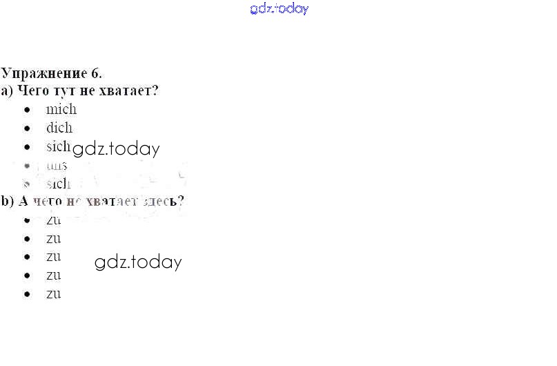 На страницах сайта gdz.today вы найдете учебный и вспомогательный материал, направленный на улучшения знаний школьной программы. ГДЗ - онлайн мир знаний Выучишь что-то, тогда будешь что-то знать Решение к главе 5. Один день нашей жизни 6 Рабочей тетради по Немецкому языку для 6 класса Бим, Фомичева Просвещение 2008
