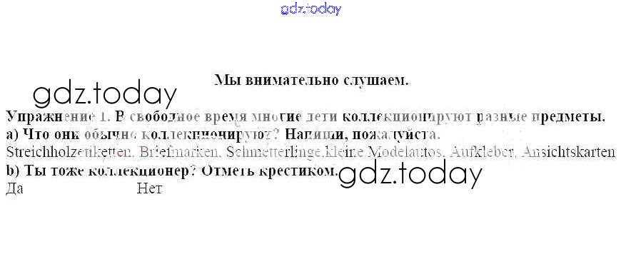 На страницах сайта gdz.today вы найдете учебный и вспомогательный материал, направленный на улучшения знаний школьной программы. ГДЗ - онлайн мир знаний Мы внимательно слушаем Решение к главе 5. Один день нашей жизни 1 Рабочей тетради по Немецкому языку для 6 класса Бим, Фомичева Просвещение 2008