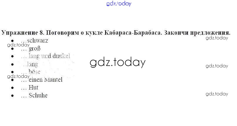 На страницах сайта gdz.today вы найдете учебный и вспомогательный материал, направленный на улучшения знаний школьной программы. ГДЗ - онлайн мир знаний Чтение прибавляет ума Решение к главе 7. В конце учебного года – весёлый маскарад! 8 Рабочей тетради по Немецкому языку для 6 класса Бим, Фомичева Просвещение 2008