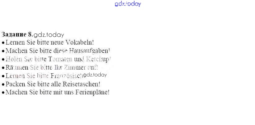 На страницах сайта gdz.today вы найдете учебный и вспомогательный материал, направленный на улучшения знаний школьной программы. ГДЗ - онлайн мир знаний Урок 1 Решение к части 1 8 Рабочей тетради по Немецкому языку для 6 класса Радченко, Хебелер Дрофа Alles Klar! 2015
