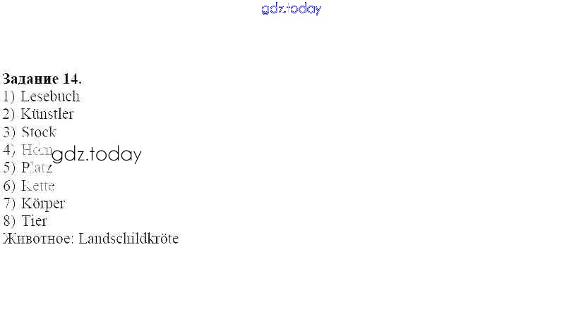 На страницах сайта gdz.today вы найдете учебный и вспомогательный материал, направленный на улучшения знаний школьной программы. ГДЗ - онлайн мир знаний Урок 4 Решение к части 1 14 Рабочей тетради по Немецкому языку для 6 класса Радченко, Хебелер Дрофа Alles Klar! 2015