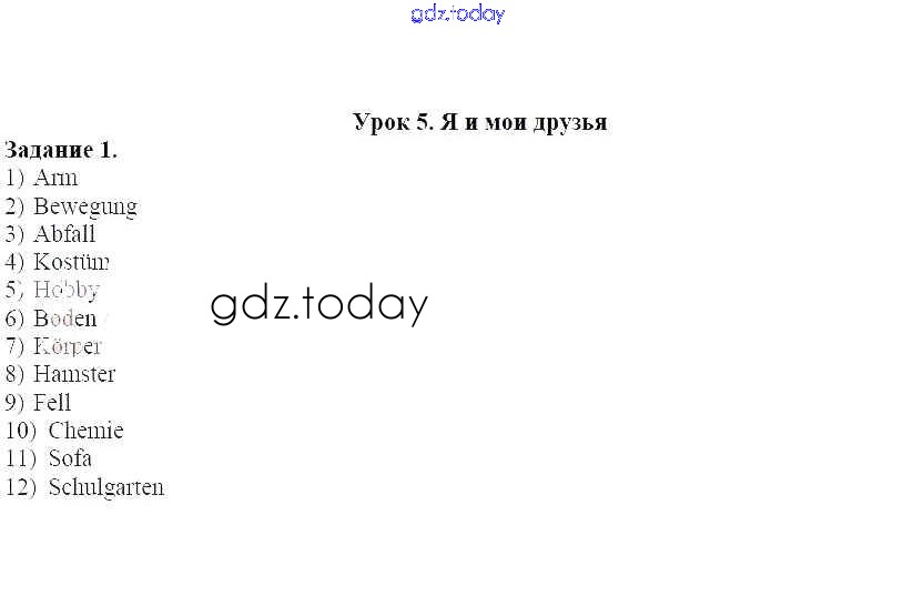 На страницах сайта gdz.today вы найдете учебный и вспомогательный материал, направленный на улучшения знаний школьной программы. ГДЗ - онлайн мир знаний Урок 5 Решение к части 1 1 Рабочей тетради по Немецкому языку для 6 класса Радченко, Хебелер Дрофа Alles Klar! 2015