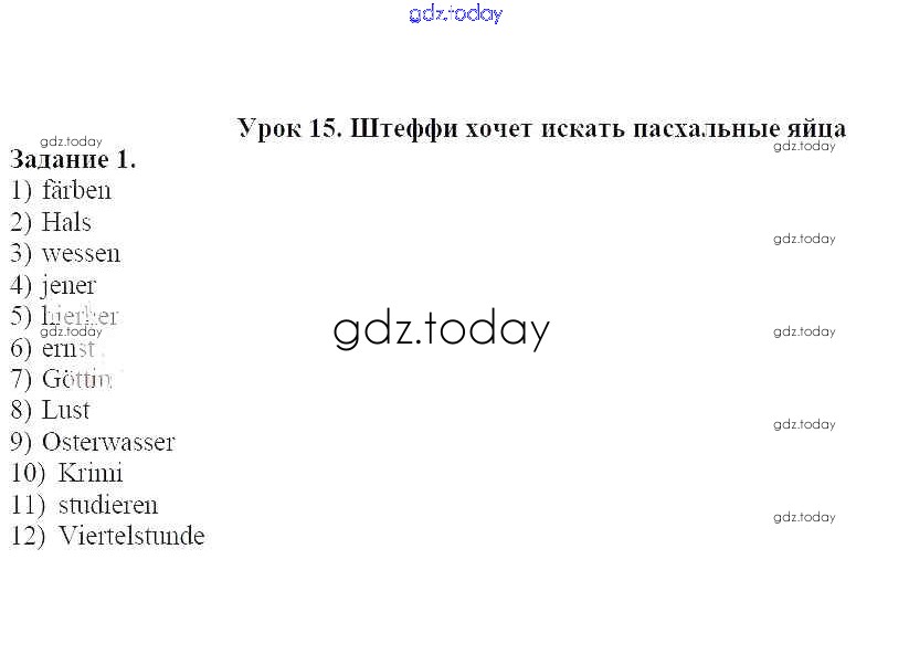 На страницах сайта gdz.today вы найдете учебный и вспомогательный материал, направленный на улучшения знаний школьной программы. ГДЗ - онлайн мир знаний Урок 15 Решение к части 2 1 Рабочей тетради по Немецкому языку для 6 класса Радченко, Хебелер Дрофа Alles Klar! 2015