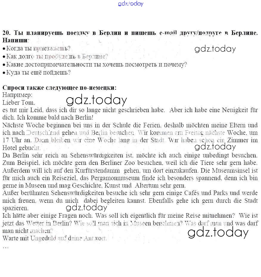 Ответы к Решение к главе 1 20 Рабочей тетради по Немецкому языку для 6 класса Радченко, Лясковская Просвещение Wunderkinder 2012