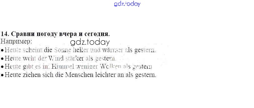 На страницах сайта gdz.today вы найдете учебный и вспомогательный материал, направленный на улучшения знаний школьной программы. ГДЗ - онлайн мир знаний Решение к главе 2 14 Рабочей тетради по Немецкому языку для 6 класса Радченко, Лясковская Просвещение Wunderkinder 2012