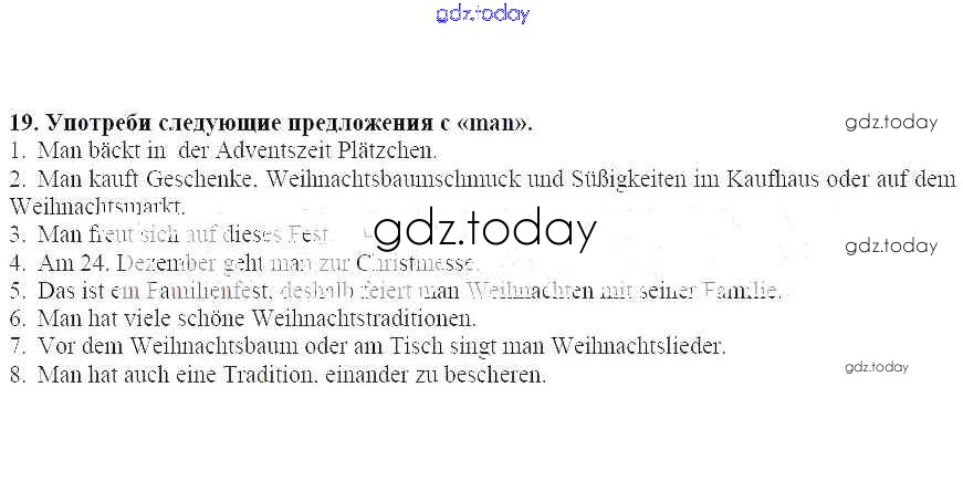 На страницах сайта gdz.today вы найдете учебный и вспомогательный материал, направленный на улучшения знаний школьной программы. ГДЗ - онлайн мир знаний Решение к главе 4 19 Рабочей тетради по Немецкому языку для 6 класса Радченко, Лясковская Просвещение Wunderkinder 2012