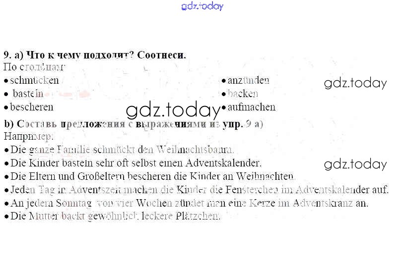 На страницах сайта gdz.today вы найдете учебный и вспомогательный материал, направленный на улучшения знаний школьной программы. ГДЗ - онлайн мир знаний Решение к главе 4 9 Рабочей тетради по Немецкому языку для 6 класса Радченко, Лясковская Просвещение Wunderkinder 2012