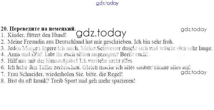 На страницах сайта gdz.today вы найдете учебный и вспомогательный материал, направленный на улучшения знаний школьной программы. ГДЗ - онлайн мир знаний Решение к главе 5 20 Рабочей тетради по Немецкому языку для 6 класса Радченко, Лясковская Просвещение Wunderkinder 2012
