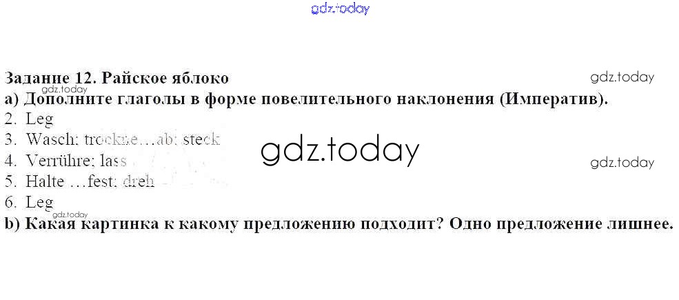 На страницах сайта gdz.today вы найдете учебный и вспомогательный материал, направленный на улучшения знаний школьной программы. ГДЗ - онлайн мир знаний Решение к главе 4 (Задания) 12 Учебнику по Немецкому языку для 6 класса Радченко, Конго Просвещение Wunderkinder 2014
