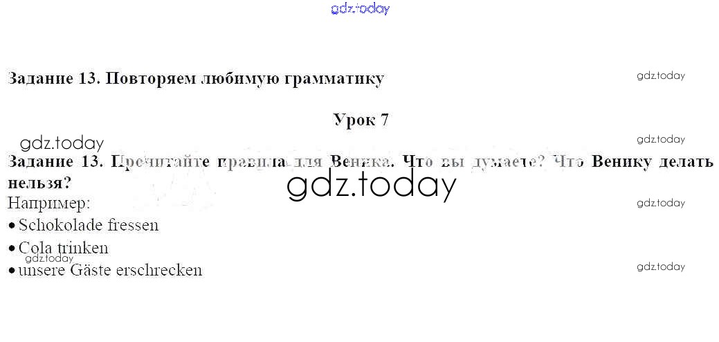 На страницах сайта gdz.today вы найдете учебный и вспомогательный материал, направленный на улучшения знаний школьной программы. ГДЗ - онлайн мир знаний Решение к главе 7 (Задания) 13 Учебнику по Немецкому языку для 6 класса Радченко, Конго Просвещение Wunderkinder 2014