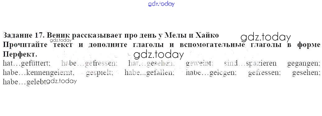 На страницах сайта gdz.today вы найдете учебный и вспомогательный материал, направленный на улучшения знаний школьной программы. ГДЗ - онлайн мир знаний Решение к главе 7 (Задания) 17 Учебнику по Немецкому языку для 6 класса Радченко, Конго Просвещение Wunderkinder 2014