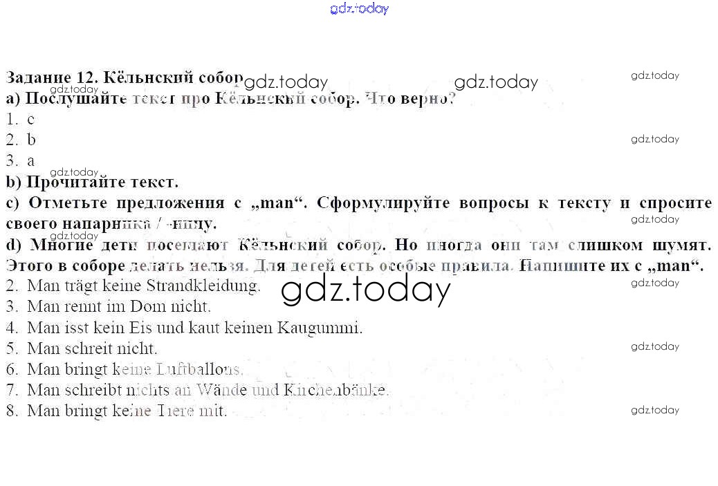 На страницах сайта gdz.today вы найдете учебный и вспомогательный материал, направленный на улучшения знаний школьной программы. ГДЗ - онлайн мир знаний Решение к главе 8 (Задания) 12 Учебнику по Немецкому языку для 6 класса Радченко, Конго Просвещение Wunderkinder 2014