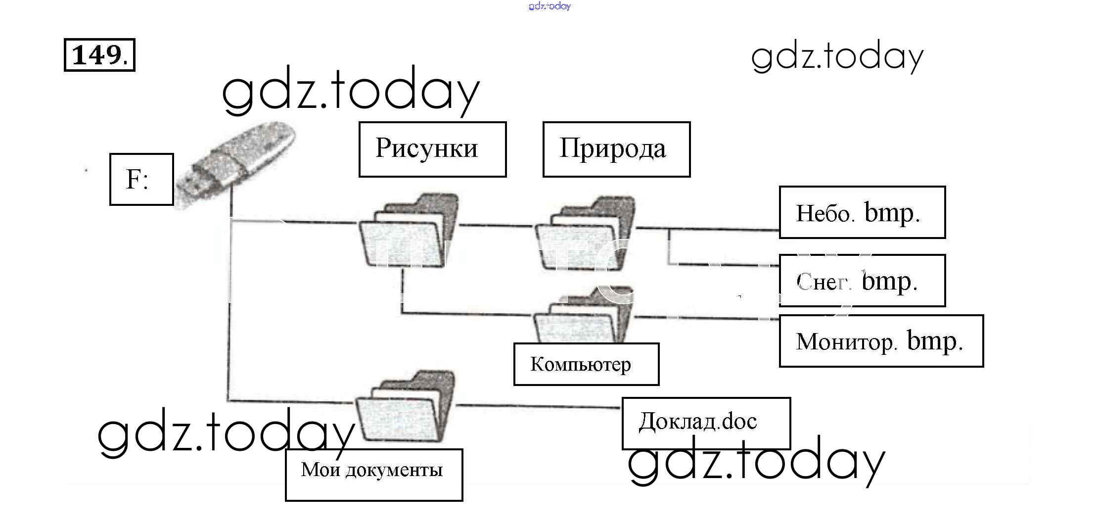 На страницах сайта gdz.today вы найдете учебный и вспомогательный материал, направленный на улучшения знаний школьной программы. ГДЗ - онлайн мир знаний Решение к заданиям 149 Рабочей тетради по Информатике для 6 класса Босова Бином 2017