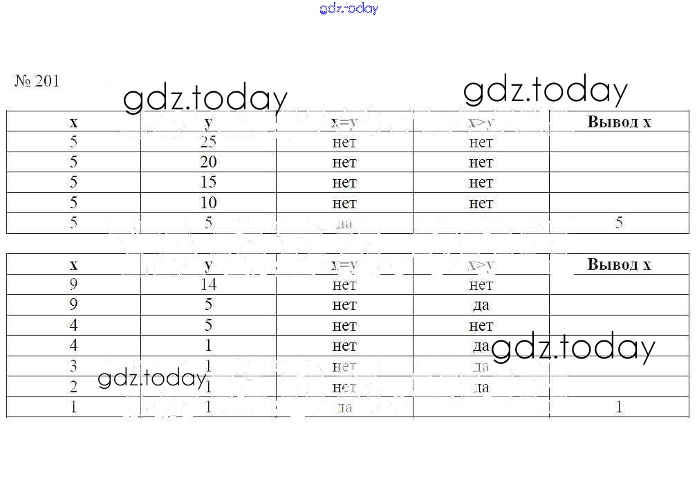 Ответы к Решение к заданиям 201 Рабочей тетради по Информатике для 6 класса Босова Бином 2017