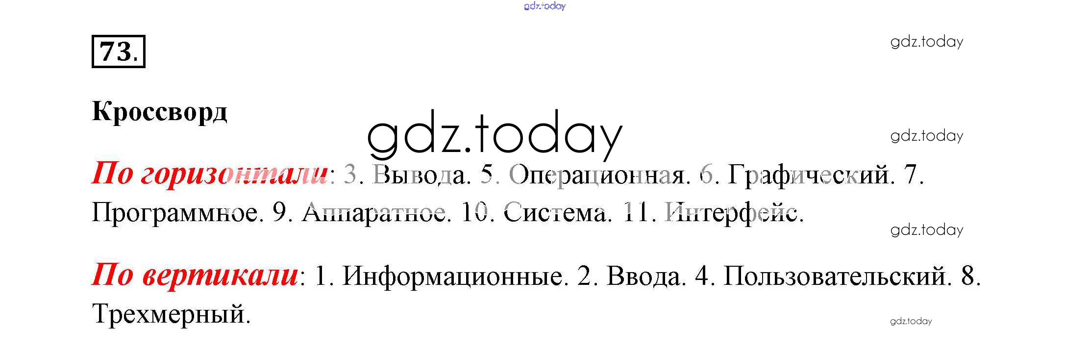 На страницах сайта gdz.today вы найдете учебный и вспомогательный материал, направленный на улучшения знаний школьной программы. ГДЗ - онлайн мир знаний Решение к заданиям 73 Рабочей тетради по Информатике для 6 класса Босова Бином 2017