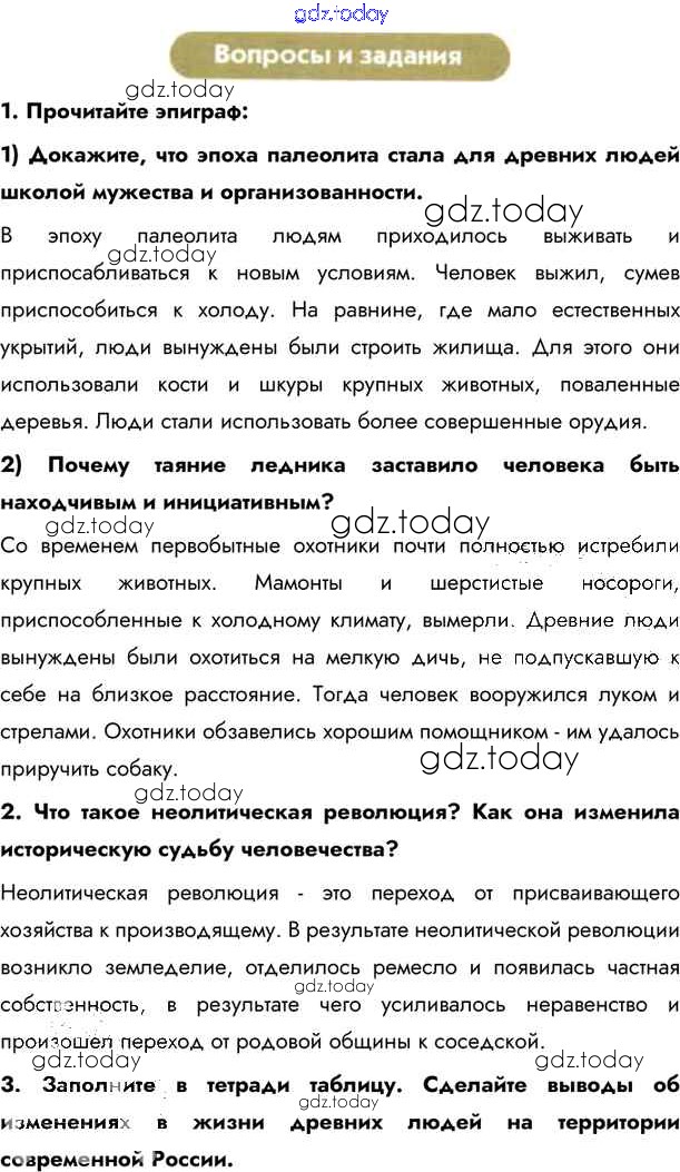 На страницах сайта gdz.today вы найдете учебный и вспомогательный материал, направленный на улучшения знаний школьной программы. ГДЗ - онлайн мир знаний §1. Древние люди на территории нашей страны Учебник 2020 (решение) стр.15 Учебнику по Истории России для 6 класса Андреев, Федоров Дрофа, Дрофа Вертикаль 2016, 2020