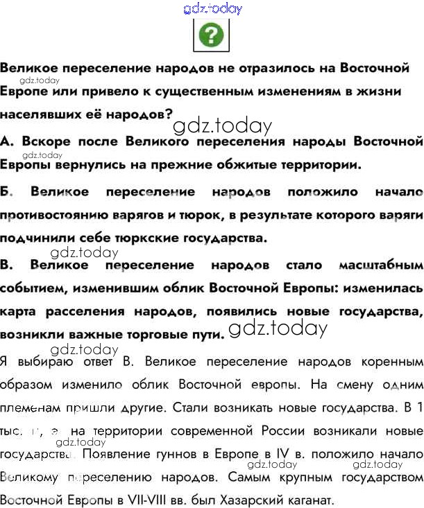 На страницах сайта gdz.today вы найдете учебный и вспомогательный материал, направленный на улучшения знаний школьной программы. ГДЗ - онлайн мир знаний §3. Великое переселение народов и его последствия Учебник 2020 (решение) стр.32 Учебнику по Истории России для 6 класса Андреев, Федоров Дрофа, Дрофа Вертикаль 2016, 2020