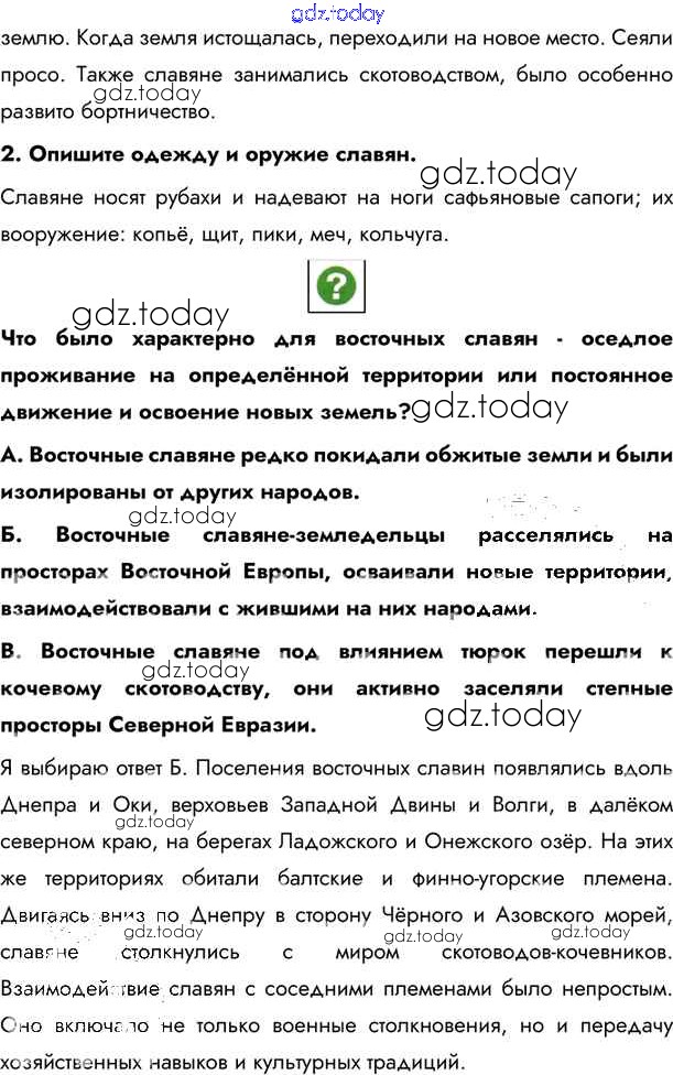 На страницах сайта gdz.today вы найдете учебный и вспомогательный материал, направленный на улучшения знаний школьной программы. ГДЗ - онлайн мир знаний §4. Жизнь восточных славян Учебник 2020 (решение) стр.40 Учебнику по Истории России для 6 класса Андреев, Федоров Дрофа, Дрофа Вертикаль 2016, 2020