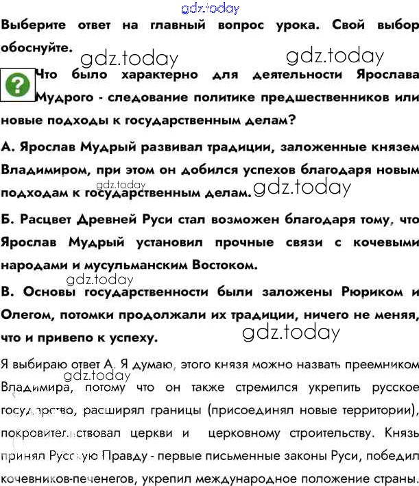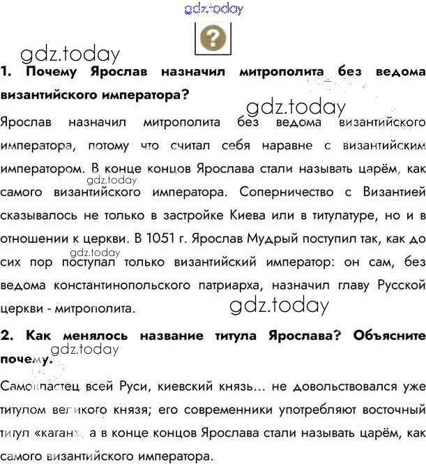На страницах сайта gdz.today вы найдете учебный и вспомогательный материал, направленный на улучшения знаний школьной программы. ГДЗ - онлайн мир знаний §8. Расцвет Древнерусского государства при Ярославе Мудром Учебник 2020 (решение) стр.75 Учебнику по Истории России для 6 класса Андреев, Федоров Дрофа, Дрофа Вертикаль 2016, 2020