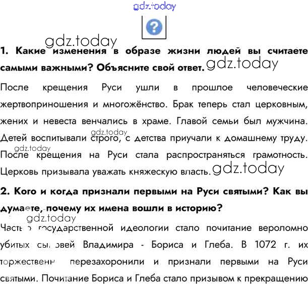 На страницах сайта gdz.today вы найдете учебный и вспомогательный материал, направленный на улучшения знаний школьной программы. ГДЗ - онлайн мир знаний §11. Образ жизни и духовный мир населения Руси Учебник 2020 (решение) стр.96 Учебнику по Истории России для 6 класса Андреев, Федоров Дрофа, Дрофа Вертикаль 2016, 2020