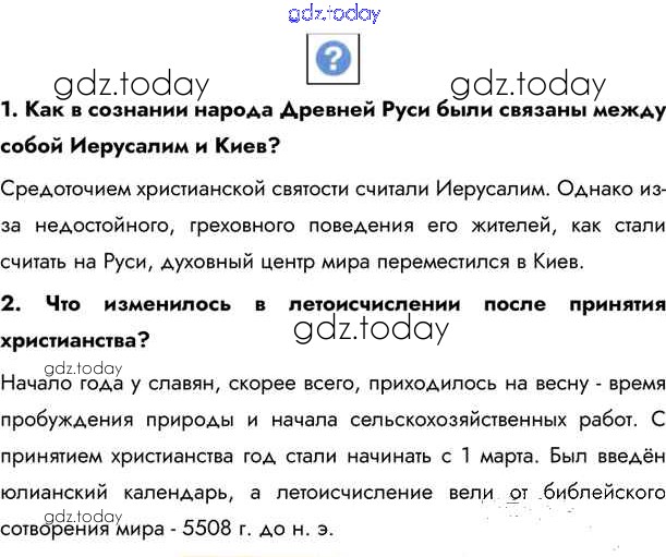 На страницах сайта gdz.today вы найдете учебный и вспомогательный материал, направленный на улучшения знаний школьной программы. ГДЗ - онлайн мир знаний §11. Образ жизни и духовный мир населения Руси Учебник 2020 (решение) стр.97 Учебнику по Истории России для 6 класса Андреев, Федоров Дрофа, Дрофа Вертикаль 2016, 2020