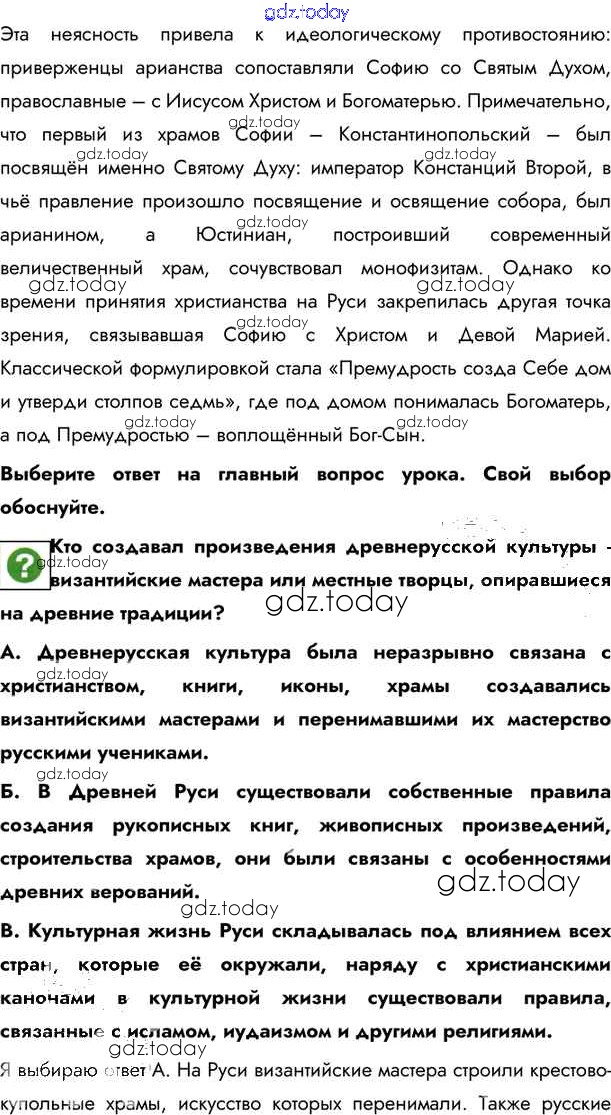 На страницах сайта gdz.today вы найдете учебный и вспомогательный материал, направленный на улучшения знаний школьной программы. ГДЗ - онлайн мир знаний §12. Древнерусская культура Учебник 2020 (решение) стр.109 Учебнику по Истории России для 6 класса Андреев, Федоров Дрофа, Дрофа Вертикаль 2016, 2020
