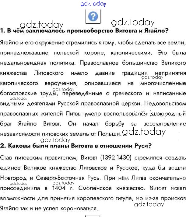 На страницах сайта gdz.today вы найдете учебный и вспомогательный материал, направленный на улучшения знаний школьной программы. ГДЗ - онлайн мир знаний §22. Великое княжество Литовское и Русское Учебник 2020 (решение) стр.194 Учебнику по Истории России для 6 класса Андреев, Федоров Дрофа, Дрофа Вертикаль 2016, 2020