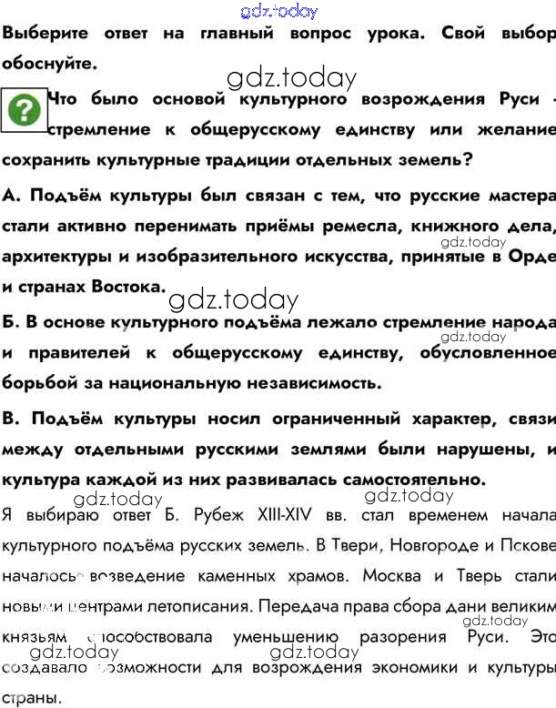 На страницах сайта gdz.today вы найдете учебный и вспомогательный материал, направленный на улучшения знаний школьной программы. ГДЗ - онлайн мир знаний §24. Упадок и возрождение русской культуры Учебник 2020 (решение) стр.214 Учебнику по Истории России для 6 класса Андреев, Федоров Дрофа, Дрофа Вертикаль 2016, 2020