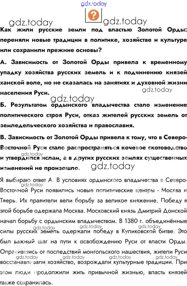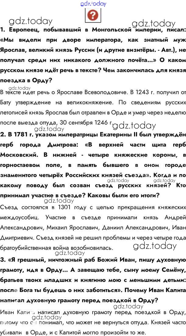 На страницах сайта gdz.today вы найдете учебный и вспомогательный материал, направленный на улучшения знаний школьной программы. ГДЗ - онлайн мир знаний §24. Упадок и возрождение русской культуры Учебник 2020 (решение) стр.215 Учебнику по Истории России для 6 класса Андреев, Федоров Дрофа, Дрофа Вертикаль 2016, 2020